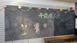 今年度、あるくとぷらすでは、10人のお友達が1/2成人式を迎えました。 当日は、8家族のお父様、お母様、姉妹さんにもご参列頂き、総勢45人での式となりました。 会場の飾りつけは、子ども達みんなで行いました。黒板アートも上 […]